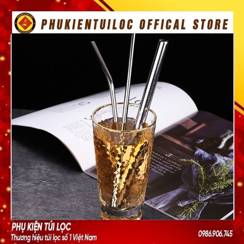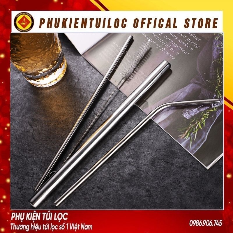 BỘ ỐNG HÚT INOX Thép Không Gỉ Cao Cấp Và Bàn Chải Cọ Rửa - Ống Hút Dài Đủ Size Cho Mọi Đồ Uống & Trà Sữa