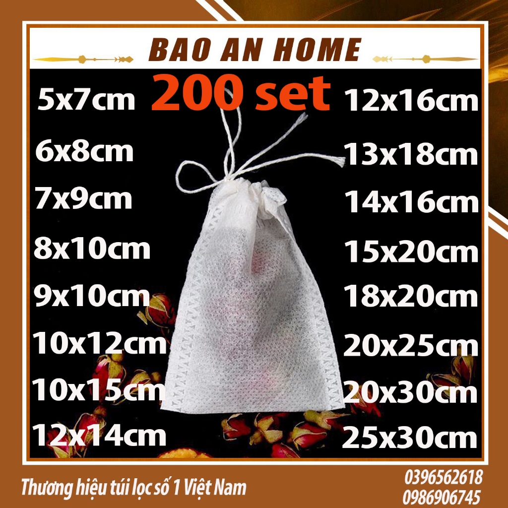 ( Sỉ) Combo 100 Túi lọc trà, cà phê vải không dệt có dây rút - Túi lọc nhiều kích thước